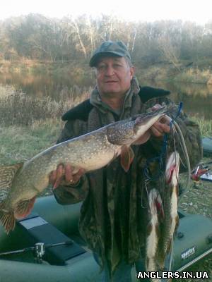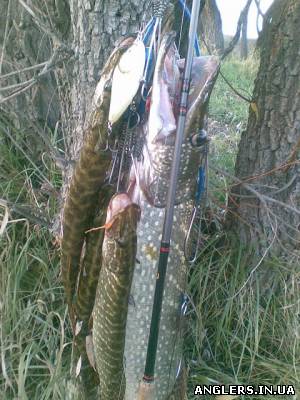 | В пятницу были выше Савинцев.Шли 2 с лишним часа вверх по течению на моторе,меня тянули на буксире.(Жека, Мерк 3,5 это сила!Поздравляю с преобретением.) Вобщем жора небыло.Но по рыбинке поймали.У меня одна в зачёте ровно полтора кг.,сход чуть большей-воблер зацепился вторым тройником за подсак,как следствие-сход.И неплохой полосатик,обе рыбы на третий предатор,а сошедшая на Крэк Джэк 58.У Жени щупак чуть меньше моего,у Олега голавлик больше полукила на какойто воблер,точно не помню-захотят сами отчитаются.