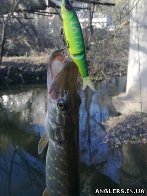 | Был на секретном месте! Рыбалка была не долгой т.к. зацепился воблером , даже попытался спасти любимого, долез до коряги и увидел его на ветке в воде , глубина уже по грудь и ветка хрусь и, всё пошол на дно, не успел схватить, дно в крупном булыжнике .Не много подрезал ногу и загнал занозу. Водичка супер выводить из КОМЫ то шо надо. Дома принял горячий душ . Выхватил пару шнурков.