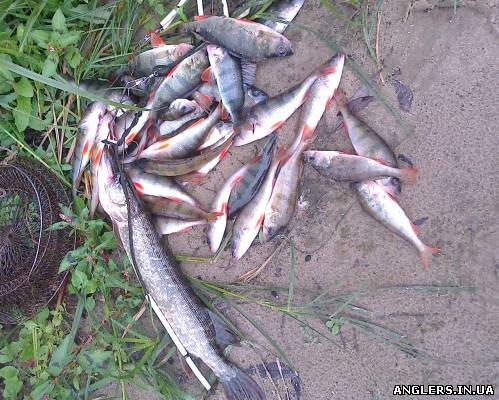 | В воскресенье и я выехал на свой любимый пляж, погонять окунька, окунь отвечал вяло и не крупный 80-120 гр. В 15 часов начался дождь,сделал перерыв на обед и вот после дождя начали активно брать вот такие карандашики, все не зачетного размера поэтому были отпущены восвояси