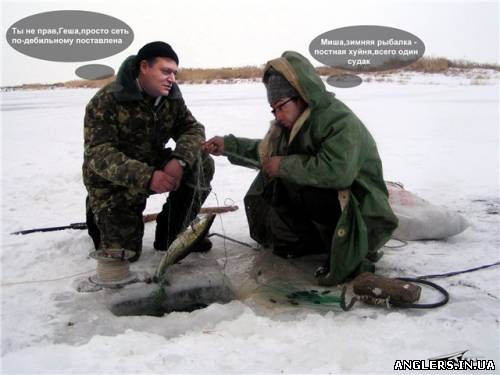 | Сегодня решили с кумом закрыться по твердой воде. В 5,00 выдвигаемся на Хотомлю. На "бугре" лед отошел метров на 20, стоит очередь на переправу - лодочник "в авторитете"..., водокачка - лед отошел на 3 - 7 метров, рыбаки переправляются на своих "резинках". Яхтклуб - парковка 5грн, выход на лед с понтона на 5+ - можно хоть в кросссовках. Принимаем условия. По рыбалке - вода мутная, течение - рыбаки загорают, курят и "злоупотребляют... Из рып: ерш-мизинец, пиписечный окунь! Под берегом - пиписечный окунь... И тут балансир за чегото цепляется...На спасение пускаю кошку-отцеп. Из лунки появляется свежепоставленная "тряпка",а в ней мой балансир... Тяну дальше...Итог: 2 рака, судак 1,2кг, щучка 1кг...Рапала рулит, цвет RH... Зимний сезон закрыли! Да здравствует открытая вода!!! Как сказал «один поэт»: зимняя рабалка – постная *уйня, всего один судак. Пы.Сы.: Из разговора с волоснюковскими быкадорами: - на хиба вы, хлопцы, сетями заливы перекрываете, рыба нереститься где будет!!!?? Шож вы завтра ловить будете….ерша.. - та гроши треба платыты, 2000 - рыбнадзору, экологам…,500 – милициянтам. - вы ж нэ захотэли по дэсятци платыты, а у нас грошей немае – рыбы мало…., а леща ще в мынулом году всэго пиймали, камазами вывозылы... а другой работы в Хотомле нэмае... ОТАКЕ – это родина моя, всех люблю на свете я …